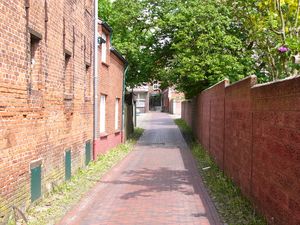 An der Ecke zur Heringstraße befindet sich der Conerusspeicher, ein Speicher aus dem Jahr 1808. In Richtung Neuer Weg folgen alte Gebäude, die heute als Restaurant, als Nebenstelle der Sparkasse und für andere kaufmännische Zwecke genutzt werden.