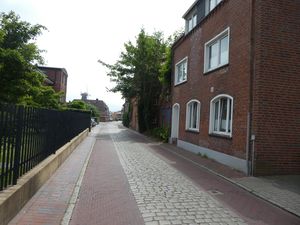 Die westliche Straßenseite ist geprägt durch die Gebäude des Neuen Wegs, deren Rückseite man hier erkennen kann. Die östliche Straßenseite bestimmen alte Villen der Doornkaat AG, sogenannte Doornkaat-Villen sowie die Fabrikgebäude selbst. In einem ehemaligen Gebäude befindet sich heute eine Nebenstelle der Sparkasse Aurich-Norden. Weiter südlich befindet sich ein Parkplatz des Hotels Reichshof.