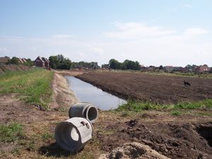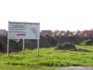 Bauschild für das Neubaugebiet - Aufnahme vom 3. Mai 2006.