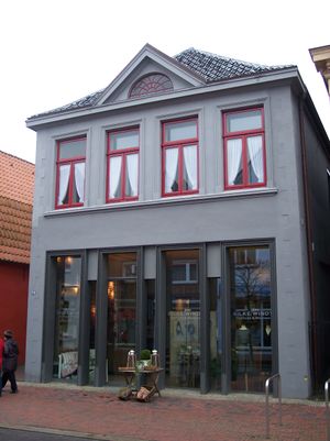 Das '''Haus Neuer Weg 73''' wurde 1938 von [[Heike Hinrichs]] erworben. Gemeinsam mit dem [[Neuer Weg 72|Neuen Weg 72]] befand sich hier bis 1969 das ''Bettenhaus van Stipriaan'', bis 1978 ein Schreibwarengeschäft mit einer Lottostelle.<ref>Canzler, Gerhard (1989): Norden. Handel und Wandel, Norden, S. 172</ref> | Das '''Haus Neuer Weg 73''' wurde 1938 von [[Heike Hinrichs]] erworben. Gemeinsam mit dem [[Neuer Weg 72|Neuen Weg 72]] befand sich hier bis 1969 das ''Bettenhaus van Stipriaan'', bis 1978 ein Schreibwarengeschäft mit einer Lottostelle.<ref>Canzler, Gerhard (1989): Norden. Handel und Wandel, Norden, S. 172</ref> | ||