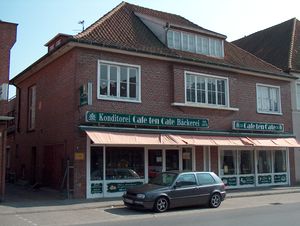 [[Datei:Westerstraße 14-15 - Cafe ten Cate 13042003.jpg|mini|Westerstraße 14-15 - Café ten Cate - Aufnahme vom 13. April 2003]] | |||