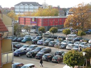 [[Datei:Kirchstraße 28 - Blick vom Balkon - 21102007.jpg|mini|Blick auf Parkplatz Götz - Aufnahme vom 21. Oktober 2007.]]