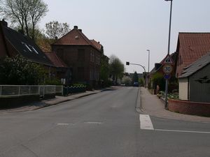 1939 wurde der Weg dann asphaltiert und erhielt die typische Schleife in Richtung der Kreuzung der beiden Mühlenstraßen. In dieser Schleife wurde auch ein Bunker errichtet.[5][6] Unklar ist, wie genau die Benennung damals lautete. Sicher ist nur, dass der Teil östlich des genannten Bahnübergangs bis zur Kreuzung am Looger Weg und Heitsweg früher noch bis etwa 1958 Ekeler Weg hieß und erst danach in Schulstraße umbenannt wurde.