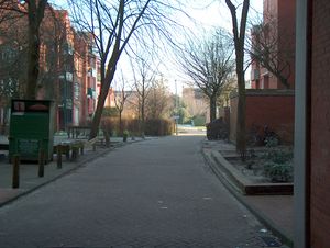Wie auch die restliche Umgebung ist die Große Lohne von Mehrfamilienhäusern (Wohnblocks) bebaut.