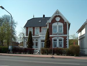 An der Bahnhofstraße 24 befindet sich eine denkmalgeschützte Stadtvilla aus der Zeit um 1905.[1] Das Gebäude reiht sich ein in eine Vielzahl von prächtigen Stadtvillen, die hier kurz nach dem Bau des Alten Bahnhofs entstanden. Bauherren waren zumeist Gutsbesitzer und Großbauern aus den Norder Umlandgemeinden, die sich hier einen Stadt- oder Altersruhesitz in verkehrsgünstiger Lage errichten ließen, um möglichst vielen Einheimischen wie Reisenden mit ihrem Wohlstand zu beeindrucken. Zudem war, anders als heute, das Wohnen an Hauptstraßen und in der Nähe von Bahnhöfen sehr begehrt, da es hier immer etwas zu gucken gab.