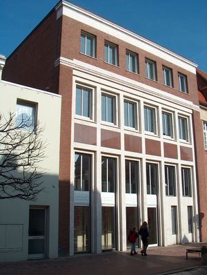 Nachdem bereits Ende des 19. Jahrhunderts für die Ostfriesische Sparkasse ein Neubau entstanden war, plante zu Beginn des 20. Jahrhunderts auch die Stadtsparkasse Norden neues Gebäude. Schon 1904 erwarb sie ein Grundstück in der Nähe der bestehenden Hauptstelle in der Großneustraße. Dazu wurden noch zwei angrenzende Häuser gekauft und nach deren Abriss begann der Bau eines repräsentativen Hauptstellengebäudes, der 1906 abgeschlossen wurde.[3] Die örtliche Presse war voll des Lobes für den neuen Sparkassenbau: "Der Monumentalbau übt einen trefflich wirkenden Eindruck aus und hebt sich von der nächsten Umgebung um so mehr ab, als durch das Einspringen der Fluchtlinie ein freier Platz geschaffen worden ist, der das Gesamtbild umso wirkungsvoller hervortreten lässt." Doch schon bald wurde das Gebäude zu klein, sodass man 1924 in das ehemalige Bankgebäude (Löwenbank) der Norder Bank zog, wo der Hauptsitz der hiesigen Sparkasse bis heute ansässig ist.[2]