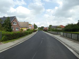 Blick in die Straße - mit neuer Teerdecke - Aufnahme vom 21. August 2021.