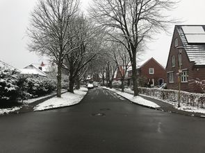 Die Straße besteht fast ausschließlich aus Einfamilienhäusern.