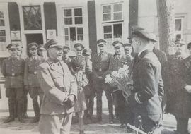 Everwien empfängt Otto Ites als ersten Ritterkreuzträger des Eisernen Kreuzes der Stadt vor der Norder NDSAP-Parteizentrale.